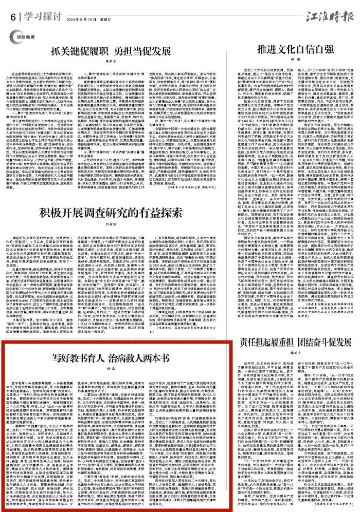 江淮时报:写好教书育人 治病救人两本书